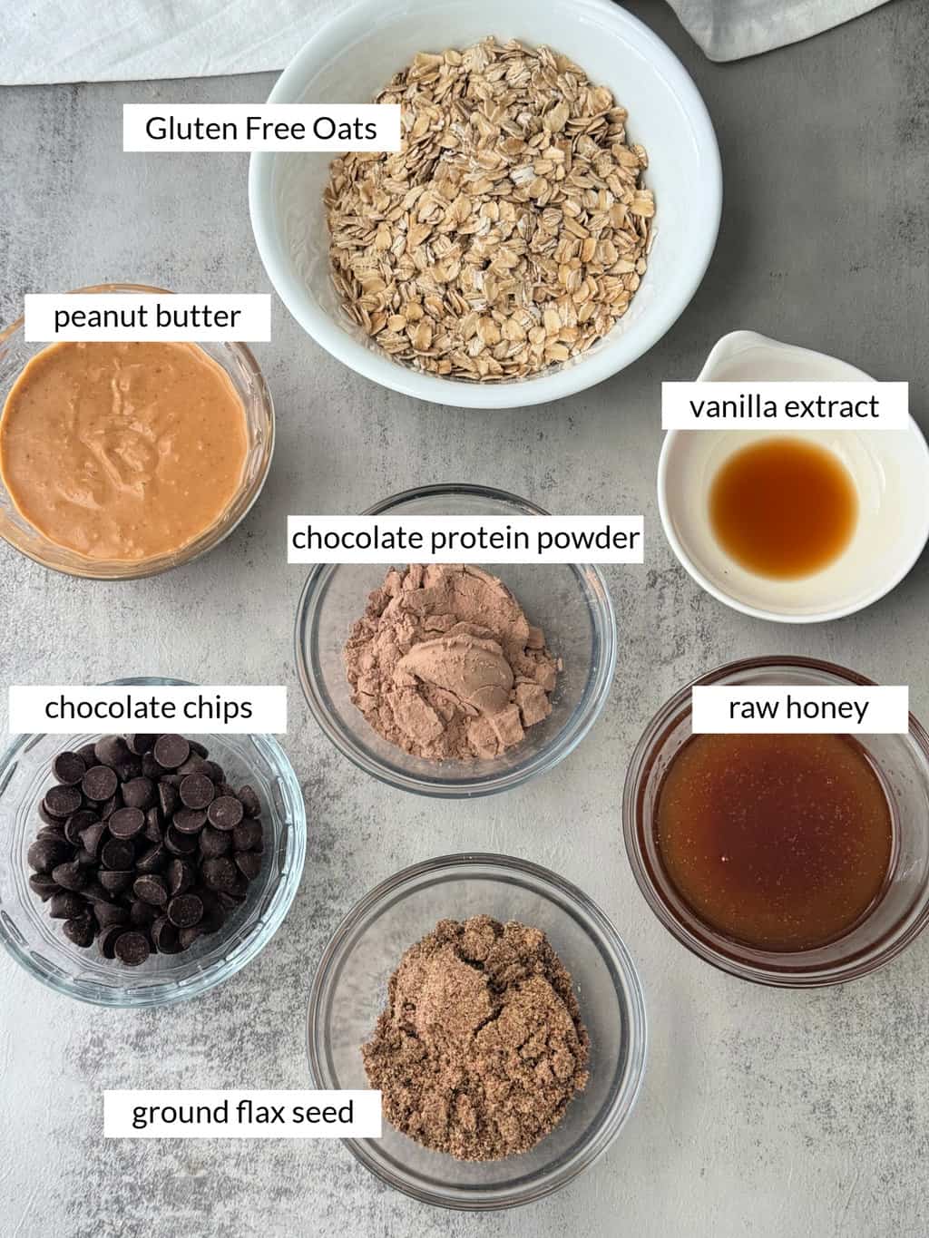 To make these chocolate oatmeal protein balls you will need just a handful of simple ingredients.