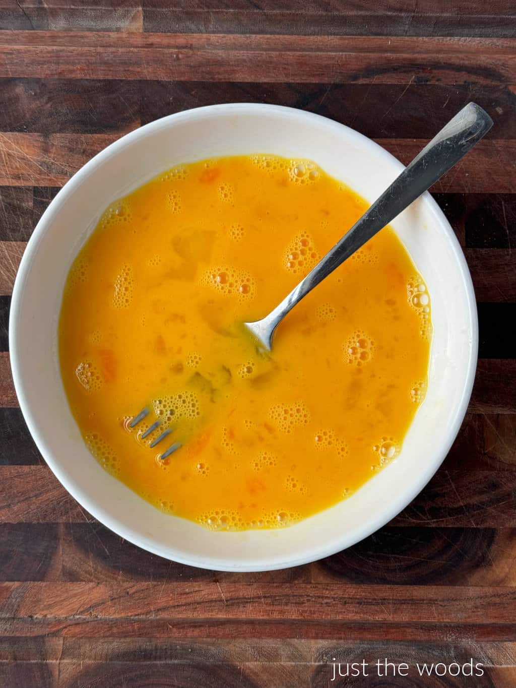 - Mix eggs in a separate bowl.